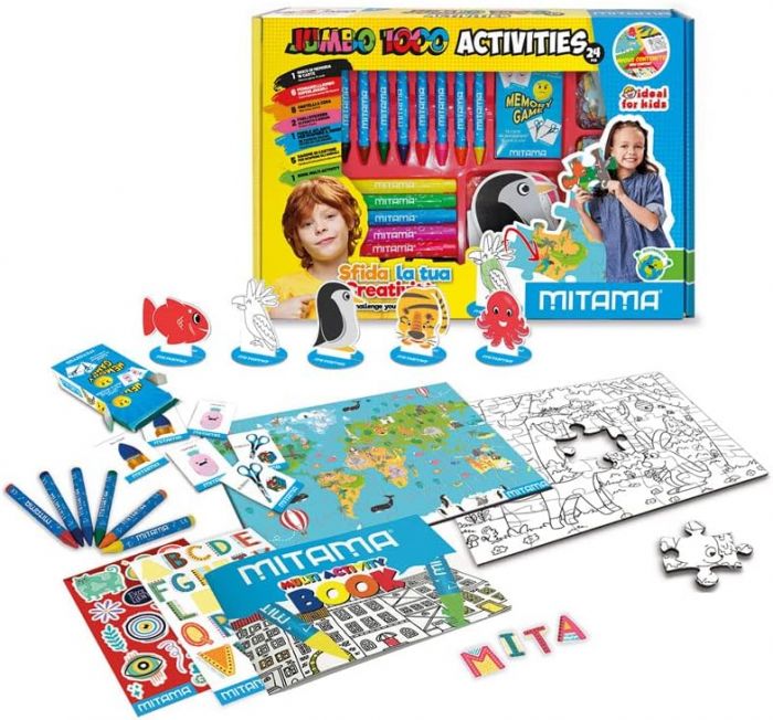 mitama scopri il mondo degli animali con sagome da colorare ,puzzle atlante , colori a cera e pennarelli
